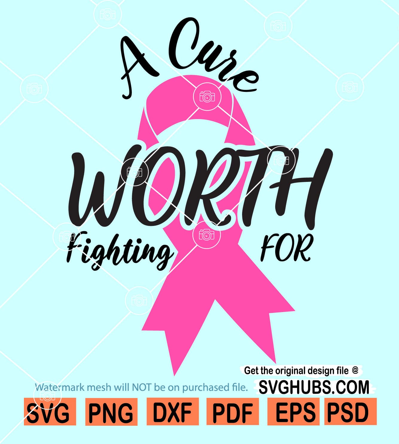 A Cure Worth Fighting For svg, Heal cancer SVG, Awareness ribbon SVG, Fight Cancer SVG, breast cancer awareness SVG, Pink ribbon svg, breast cancer svg, SVG files for cricut, PNG files, sublimation file, layered svg, design bundles, Cricut files