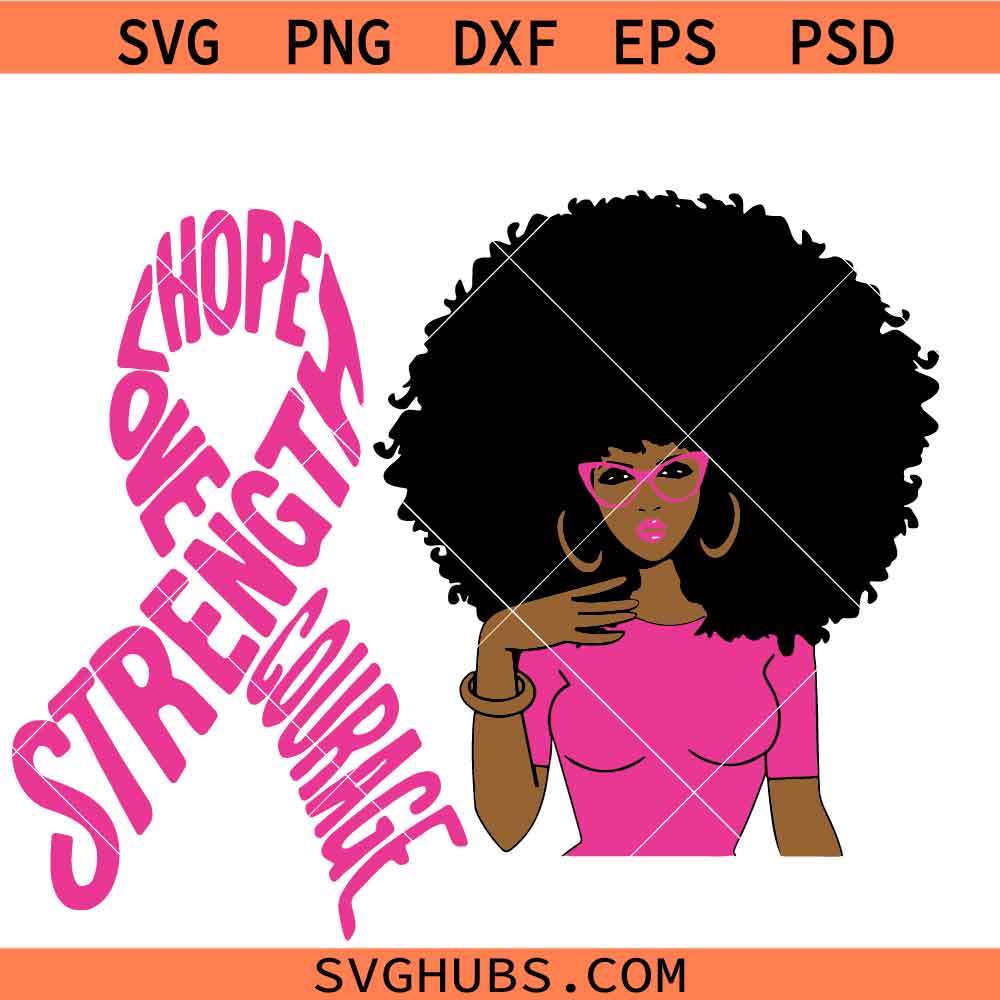 Afro Woman Breast Cancer Warrior SVG, Pink Ribbon SVG, Breast Cancer Awareness Shirt SVG