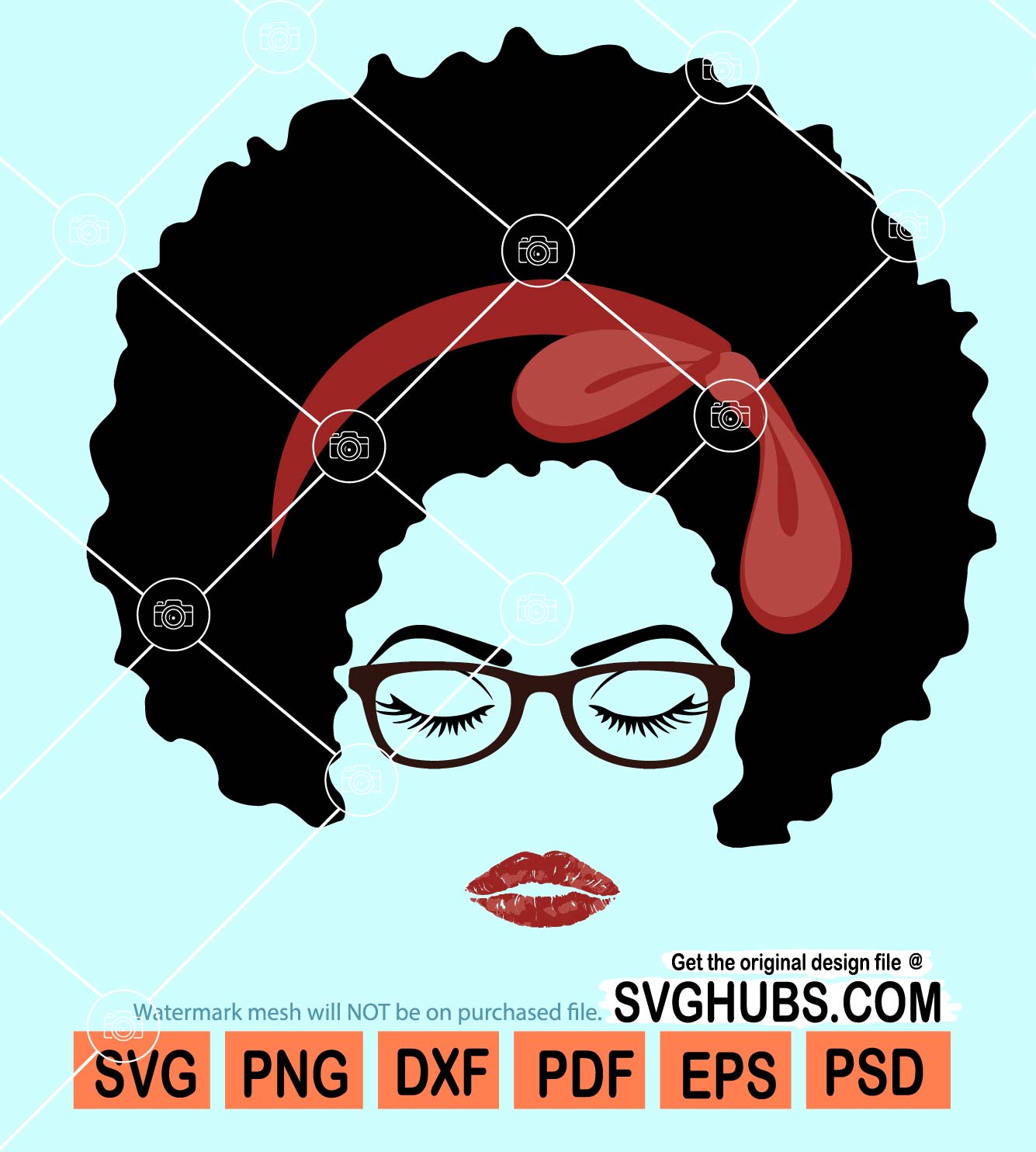 Afro woman face svg, Afro woman face red bandana svg, Black Woman svg, Afro woman eyelashes svg, Afro Lady Svg, African American svg, afro Puff Girl SVG, Queen Girl svg, SVG files for Cricut, EPS, DXF, PNG files, Silhouette files