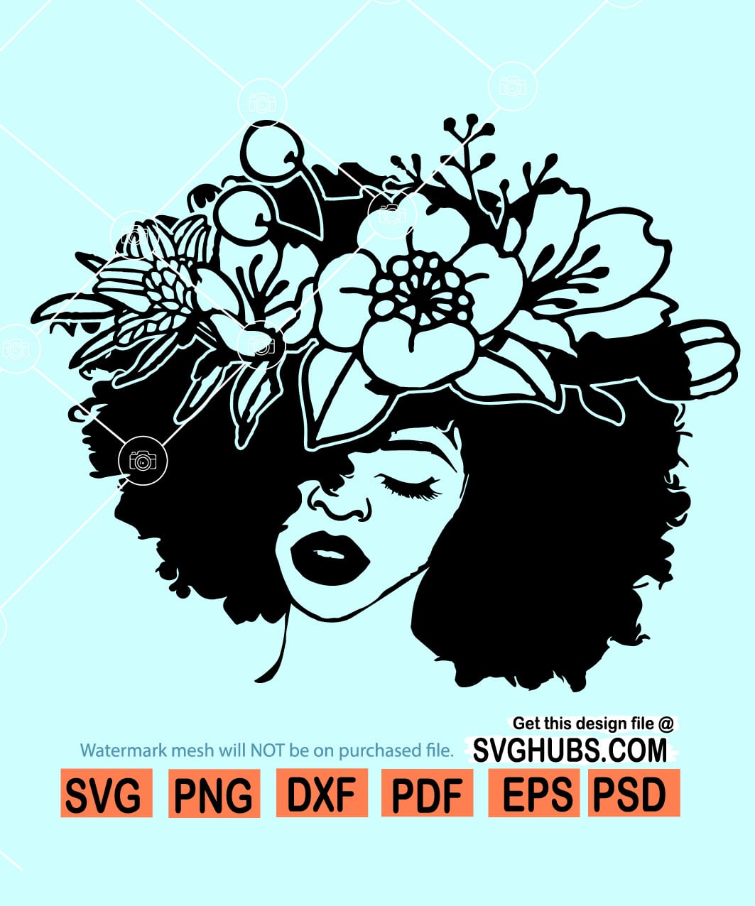 Afro woman with flowers svg, Afro woman with blue flowers svg, Afro woman floral svg, Afro woman svg, black woman afro svg, black queen svg, black woman SVG, afro girl SVG, African American SVG, black girl SVG, free afro woman svg, black girl magic SVG