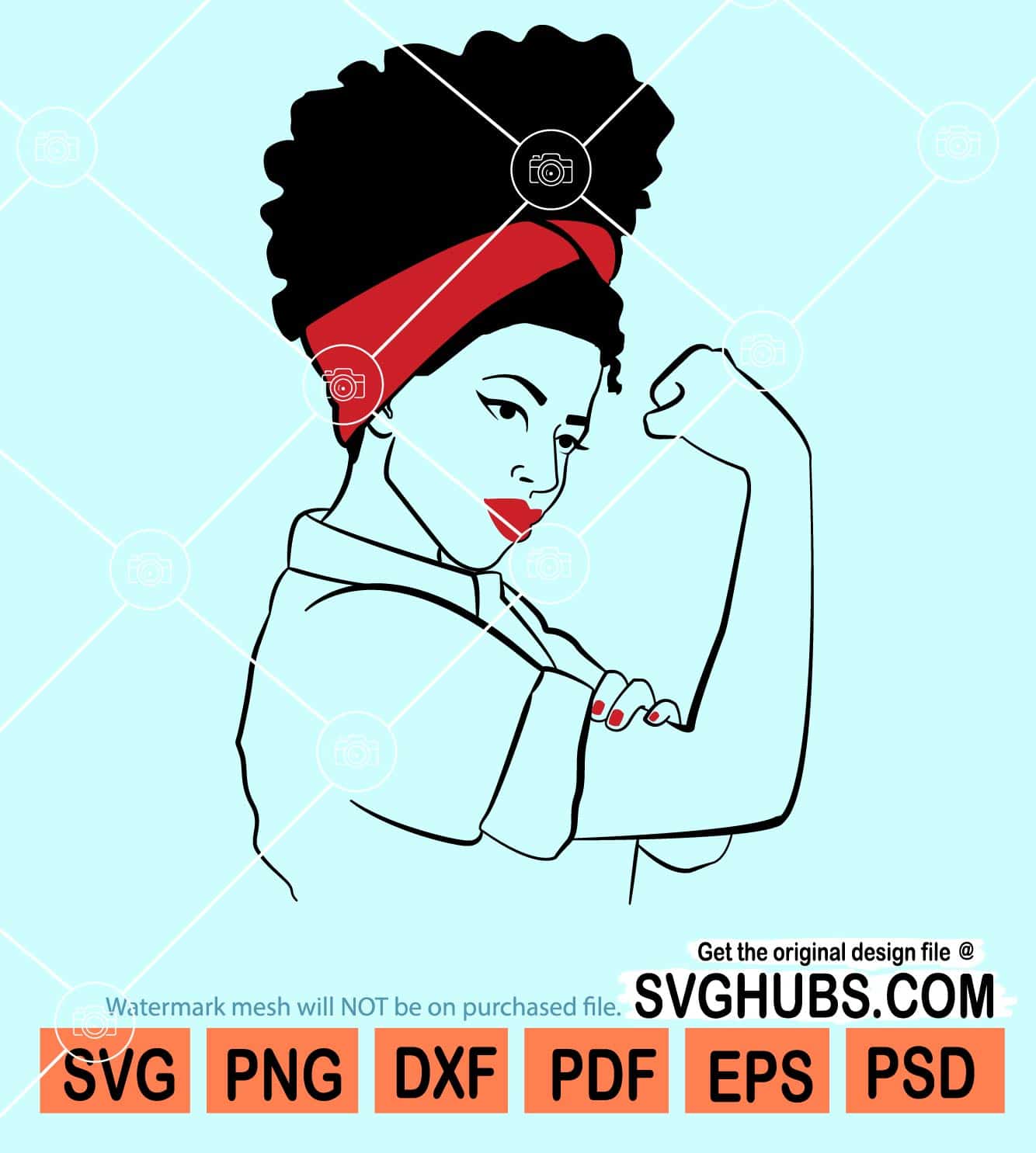 Afro woman with red bandana and lipstick svg, Afro Bun Hair svg, Afro woman SVG, Makeup Svg, Lips Svg, Lipstick Svg, Black girl magic svg, black woman svg, girl magic svg, black woman clipart svg, afro woman svg, melanin svg, SVG files for Cricut, SVG Hubs, sublimation PNG files.