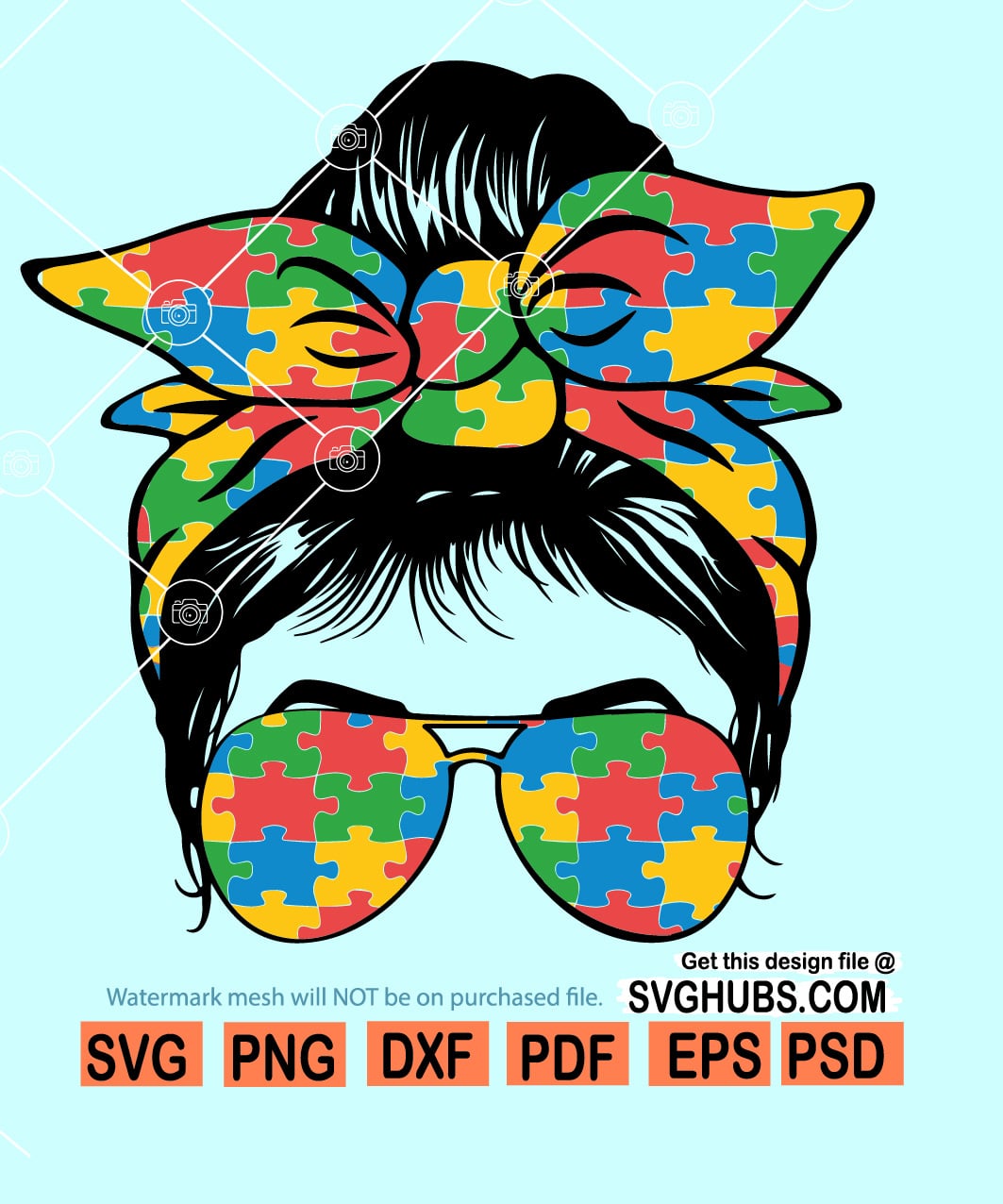 Autism messy bun svg, Autism mom svg, Autism awareness SVG, messy bun autism svg, Autism svg files for cricut