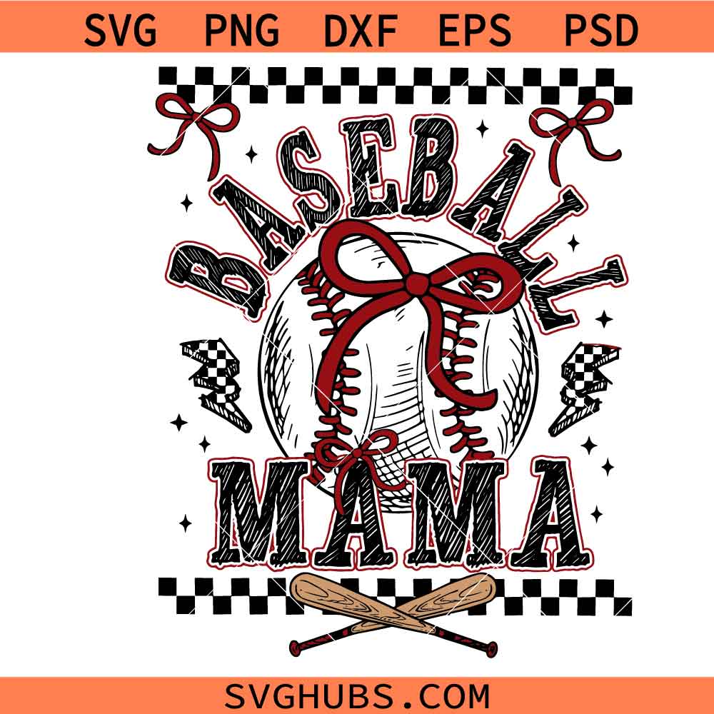 Baseball Mama svg, baseball Coquette Bow svg, baseball Bow svg, Retro baseball Mama svg