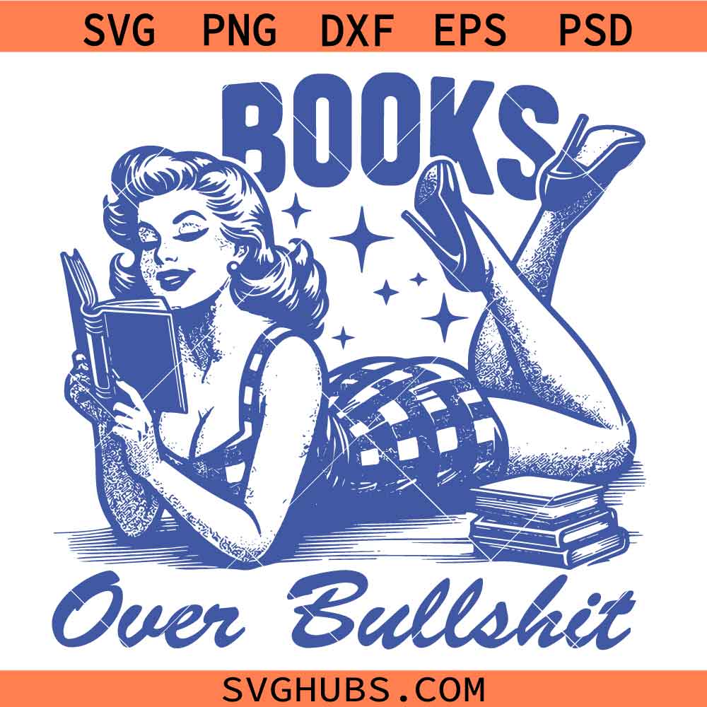 Books Over Bullshit Svg Png, Woman Book Lover Svg Png, Book Lover Svg Png