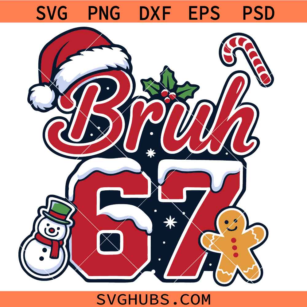 Bruh Six Seven Meme Christmas svg, Funny Christmas Squad 67 svg, 67 Bruh Funny Christmas Png, Santa Hat Xmas svg