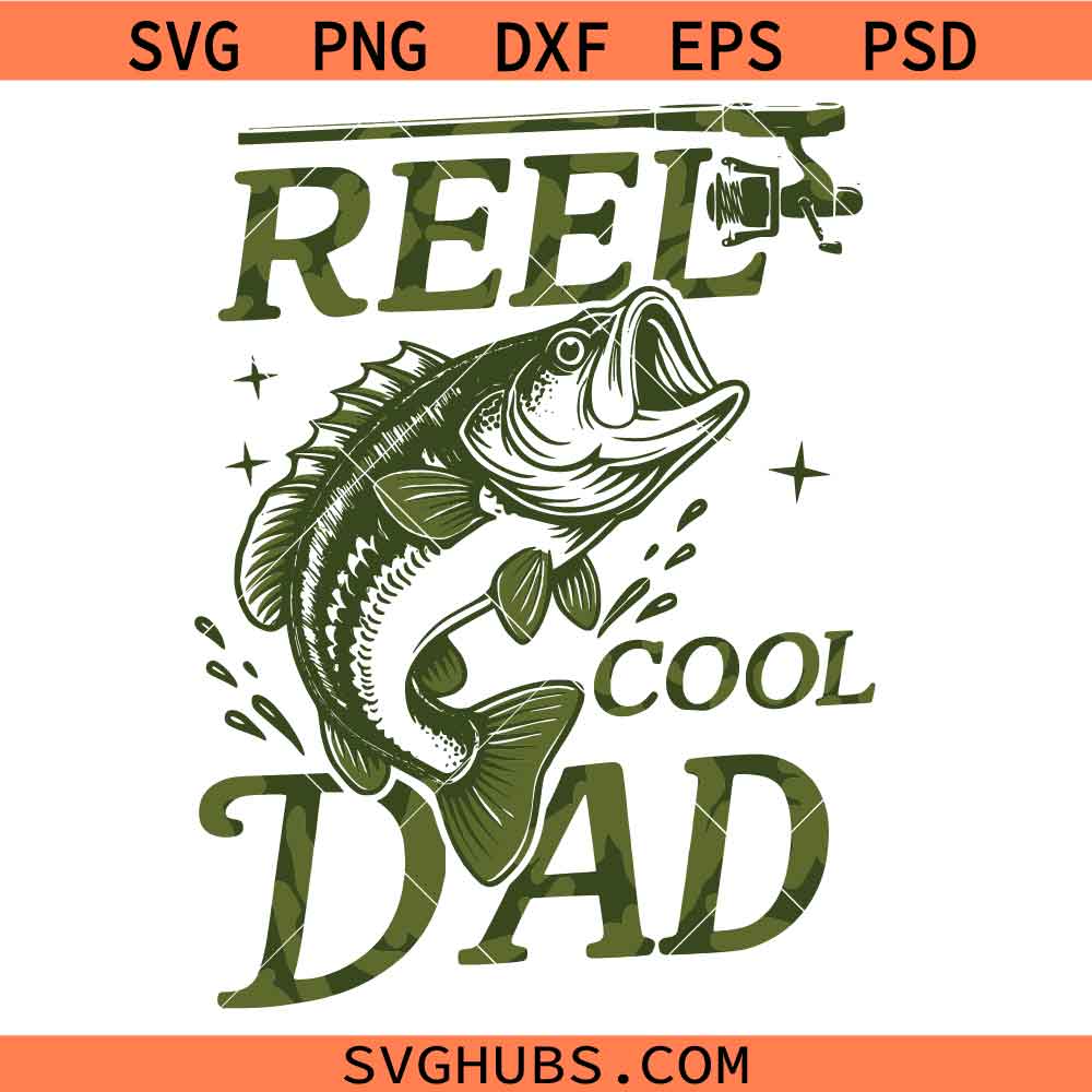 Camo Reel Cool Dad SVG, Fishing Dad SVG. Cool Dad SVG