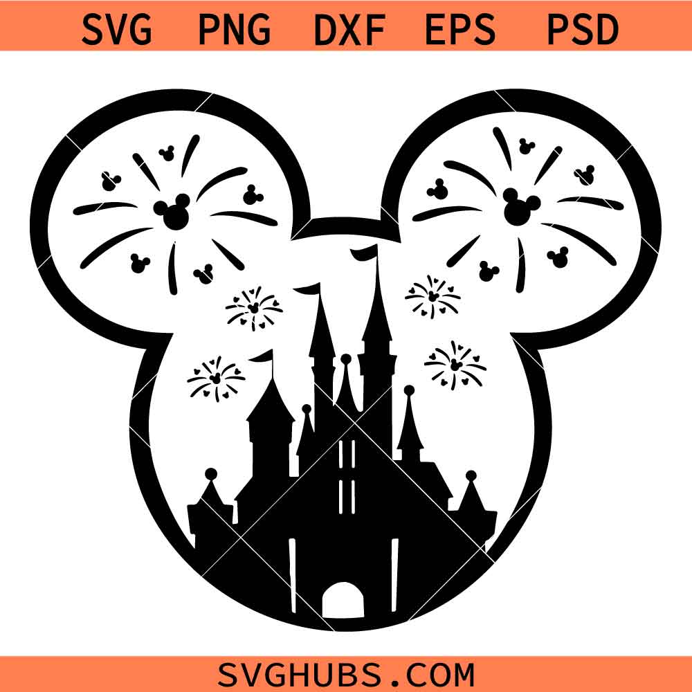Castle Firworks Mouse Ears Svg Png, Mickey Fireworks Svg Png, Magical Castle Svg Png
