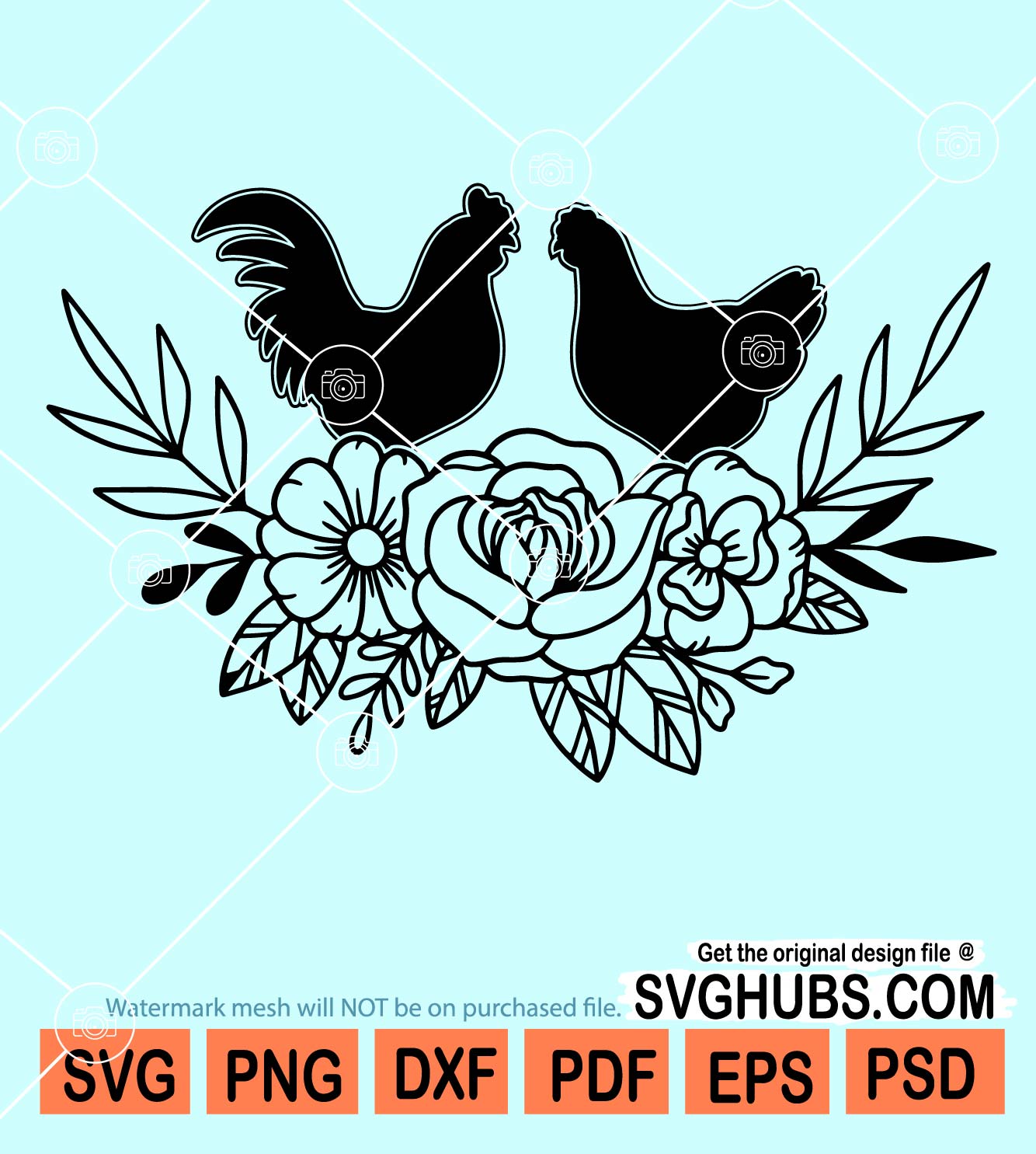 Chicken and rooster floral svg