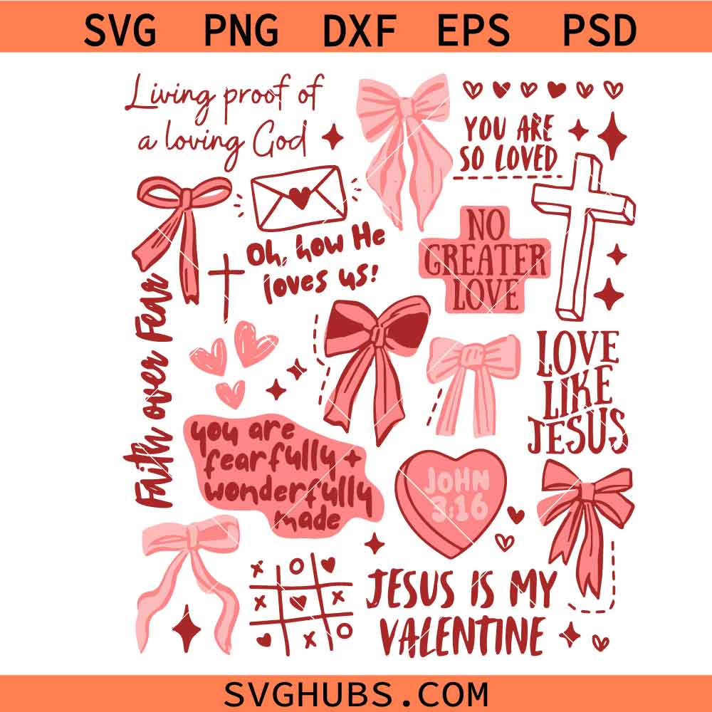 Christian Valentine’s Day Shirt Svg, Jesus is My Valentine Tote SVG, John 3:16 Bows SVG