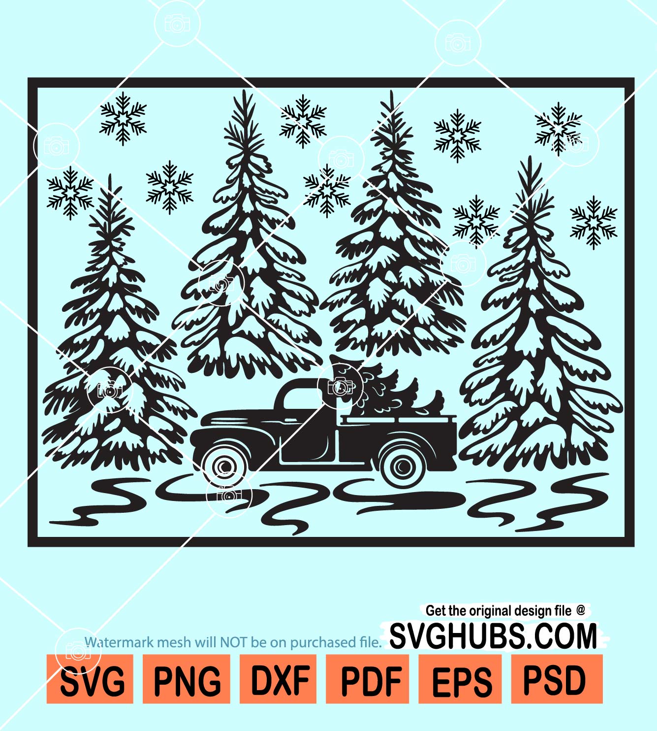 Christmas truck winter scene svg, winter svg, christmas truck svg, christmas trees svg, christmas svg, merry christmas svg, christmas saying svg, christmas sign svg, happy holidays svg, christmas season svg, christmas t-shirt svg, valentines svg, SVG files for Cricut, EPS, DXF, PNG files, Silhouette files