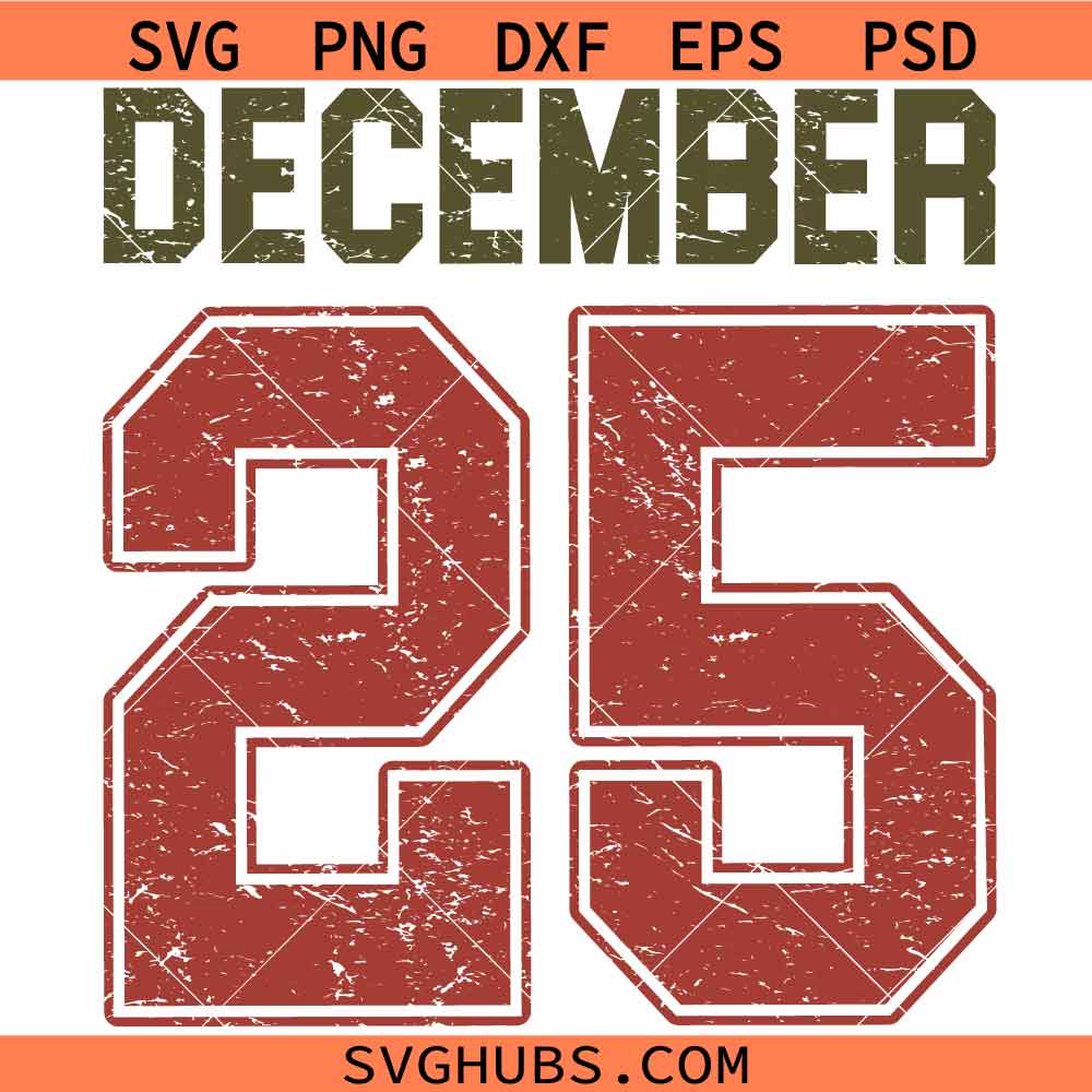 Distressed December SVG,Grunge December 25 SVG, Christmas Decor SVG