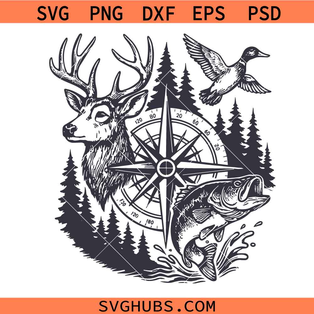Duck deer and hook svg, Deer hunter svg, Hunting season svg, Fish hook svg