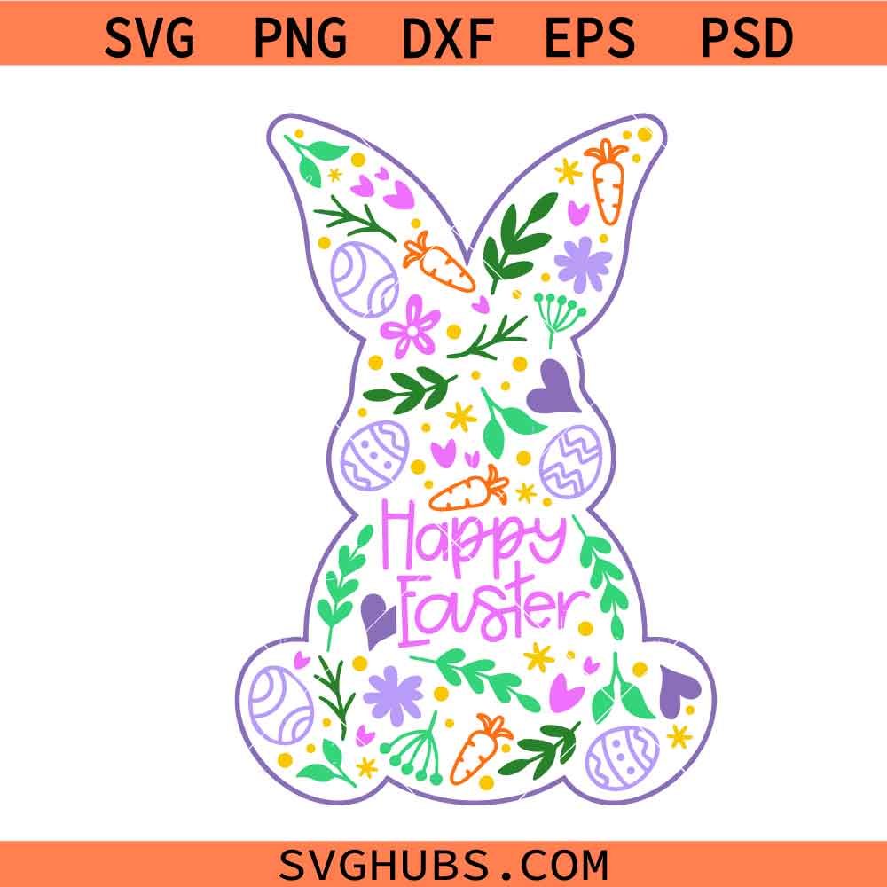 Easter SVG, Easter Bunny SVG, Happy Easter Svg, Flowers bunny Svg