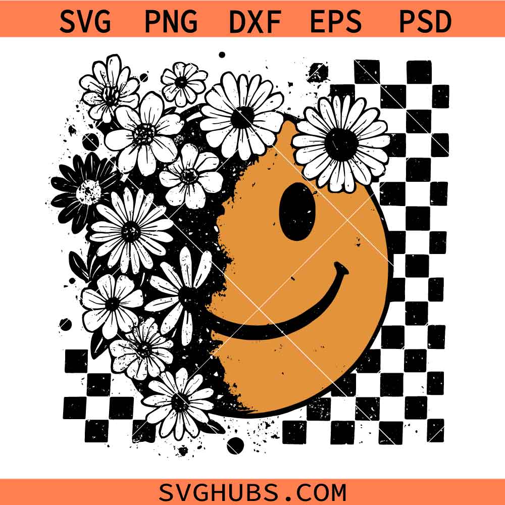 Floral fall smiley face SVG, Daisy Smiley SVG, Checkered Fall SVG