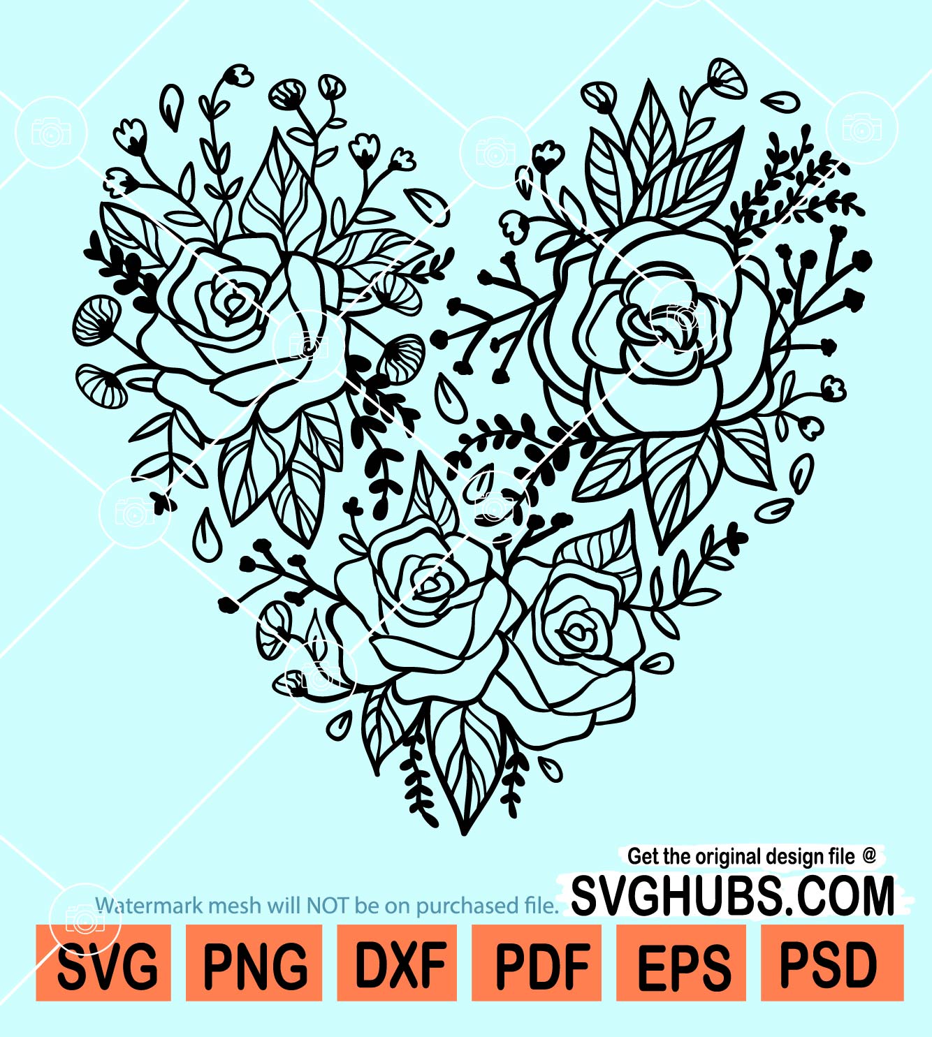 Floral heart SVG, Valentine floral heart svg, Valentine day SVG, Heart shape SVG, Valentine svg file