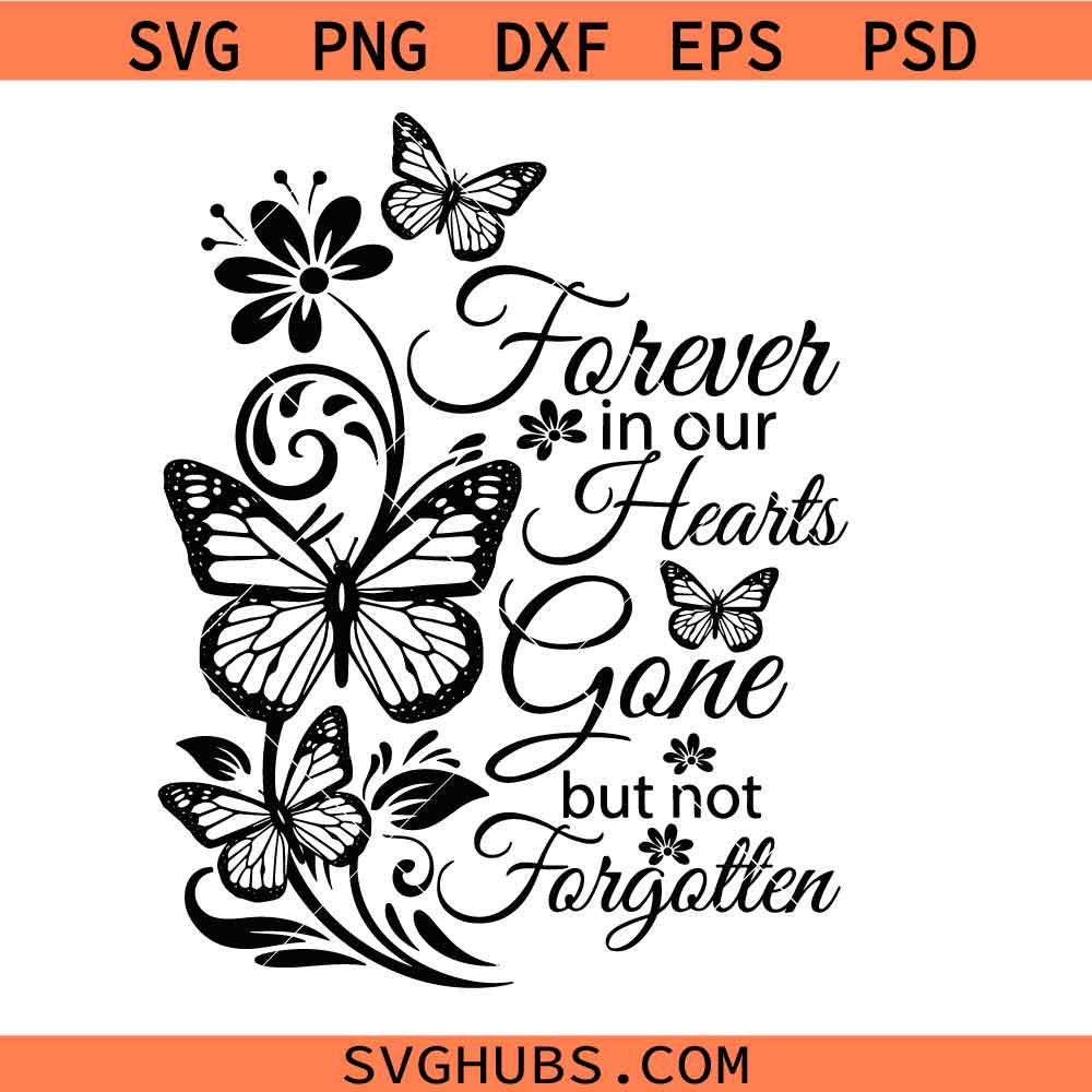 Forever in Our Hearts Gone but not Forgotten Svg Png, Butterfly Memorial Svg Png, In Loving Memory Svg Png
