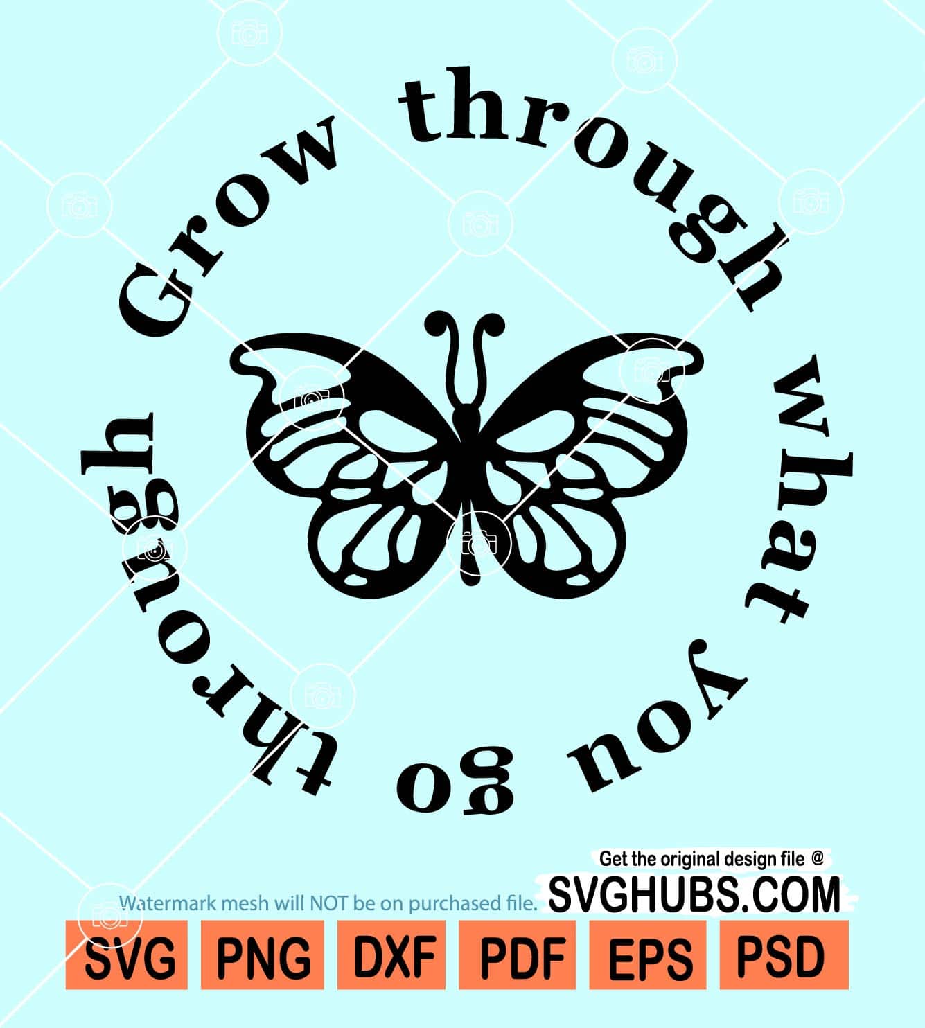 Grow through what you go through svg, butterfly svg, Positive shirt svg, motivational svg, inspirational svg, positive svg, cute butterfly svg, butterfly quotes svg, SVG files for Cricut, EPS, DXF, PNG files, Silhouette files