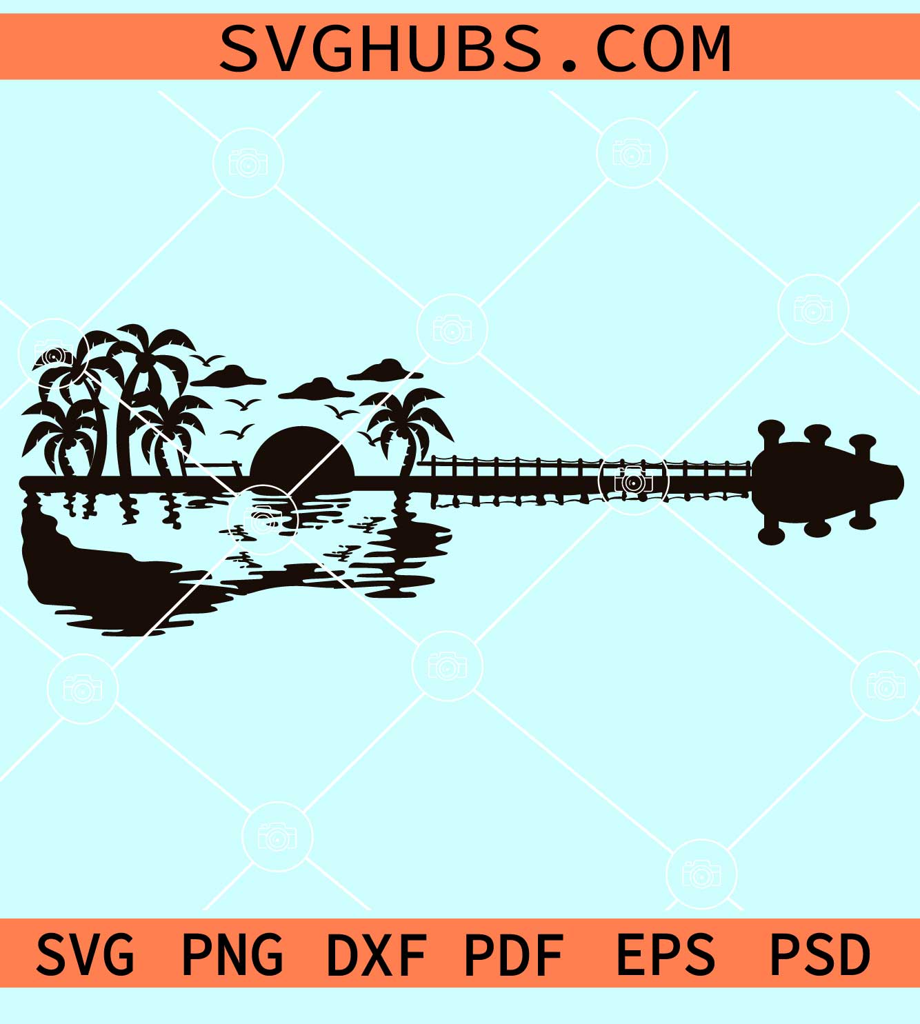Guitar beach scenery svg, Ocean Beach Sunset guitar svg, Guitar Sunset svg, Guitar Svg, Guitar Silhouette SVG, Musical Instrument svg, Music Lover svg, Guitar Drawing svg