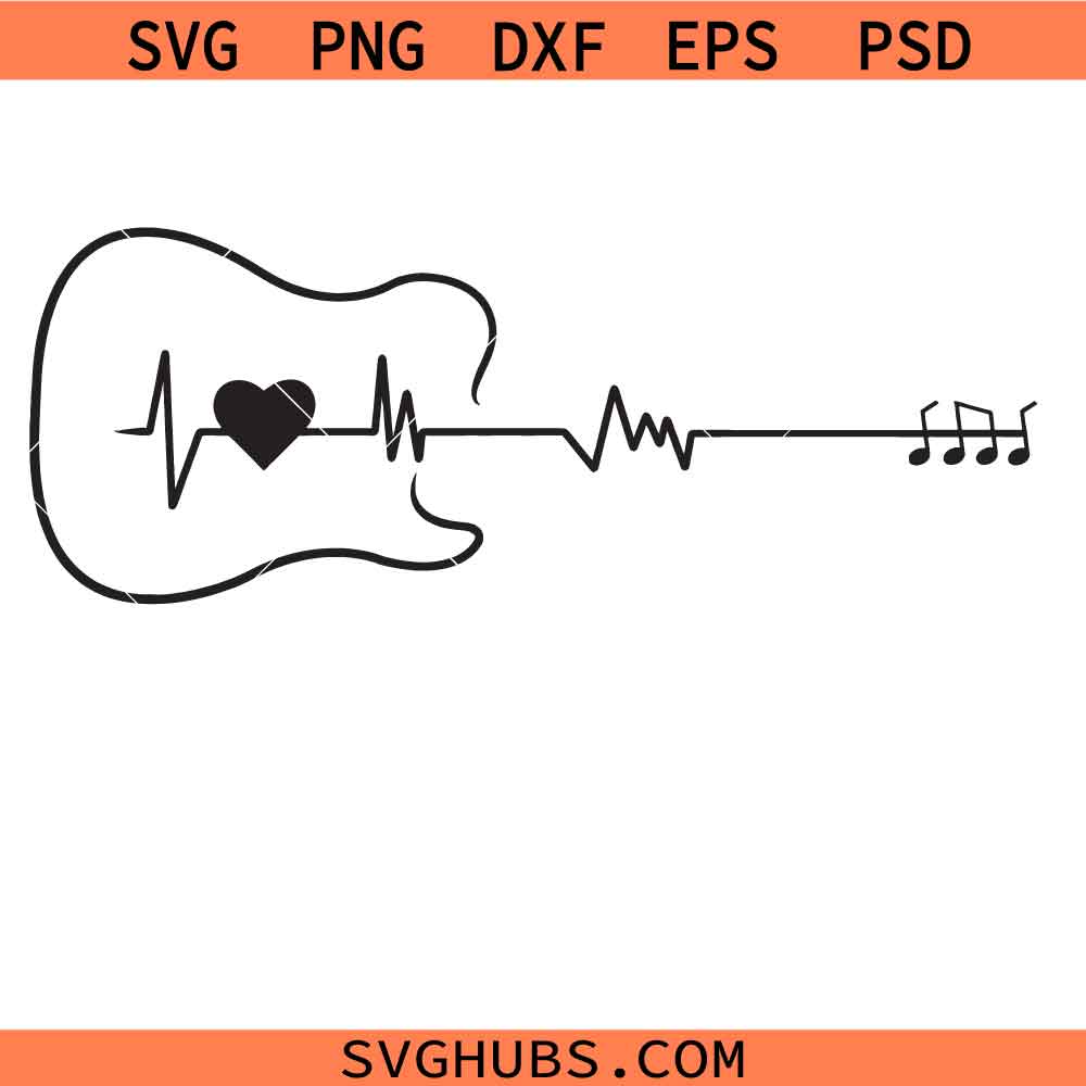 Guitar Heart Beat Svg Png, Guitar Beat Music Svg Png, Acoustic Guitar Svg Png, Guitar Note Svg Png