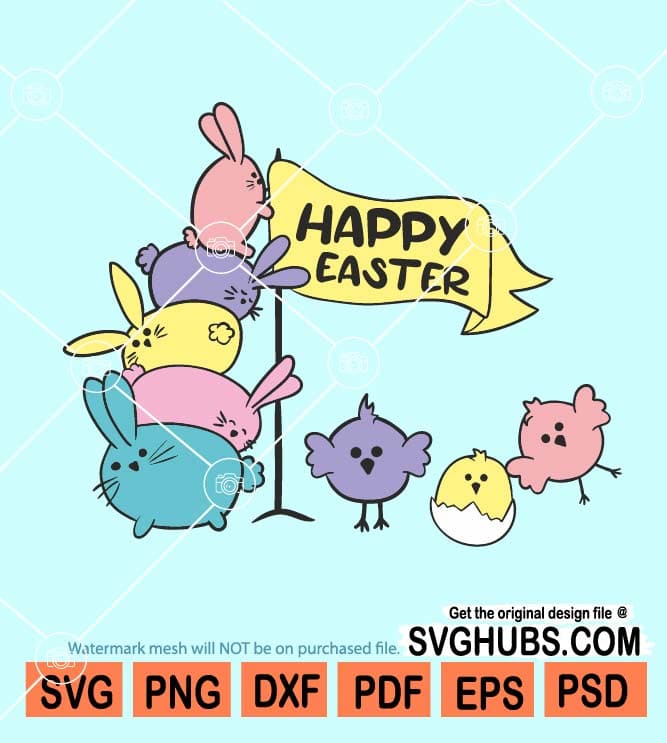 Happy Easter flag bunnies and chicks svg, Happy easter flag svg, Easter bunny svg, Easter chick svg, Easter sign svg, Hoppy easter svg, Easter flag svg, Easter T-shirt svg, Christian svg, Easter svg