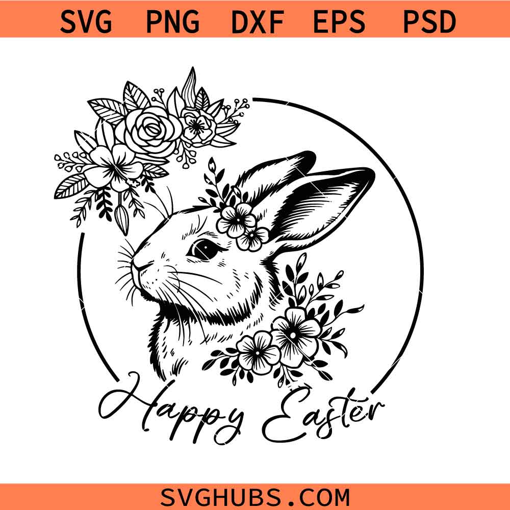 Happy Easter SVG, Easter Bunny SVG, Floral Bunny SVG, Spring Svg, Flowers Svg