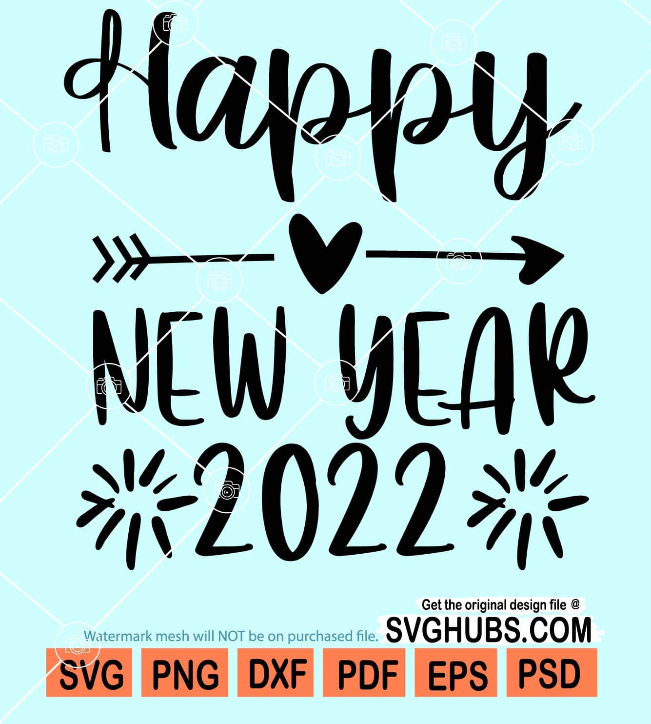 Happy new year 2022 svg, Happy new year svg, 2022 svg, hello new year svg, love heart with arrow svg