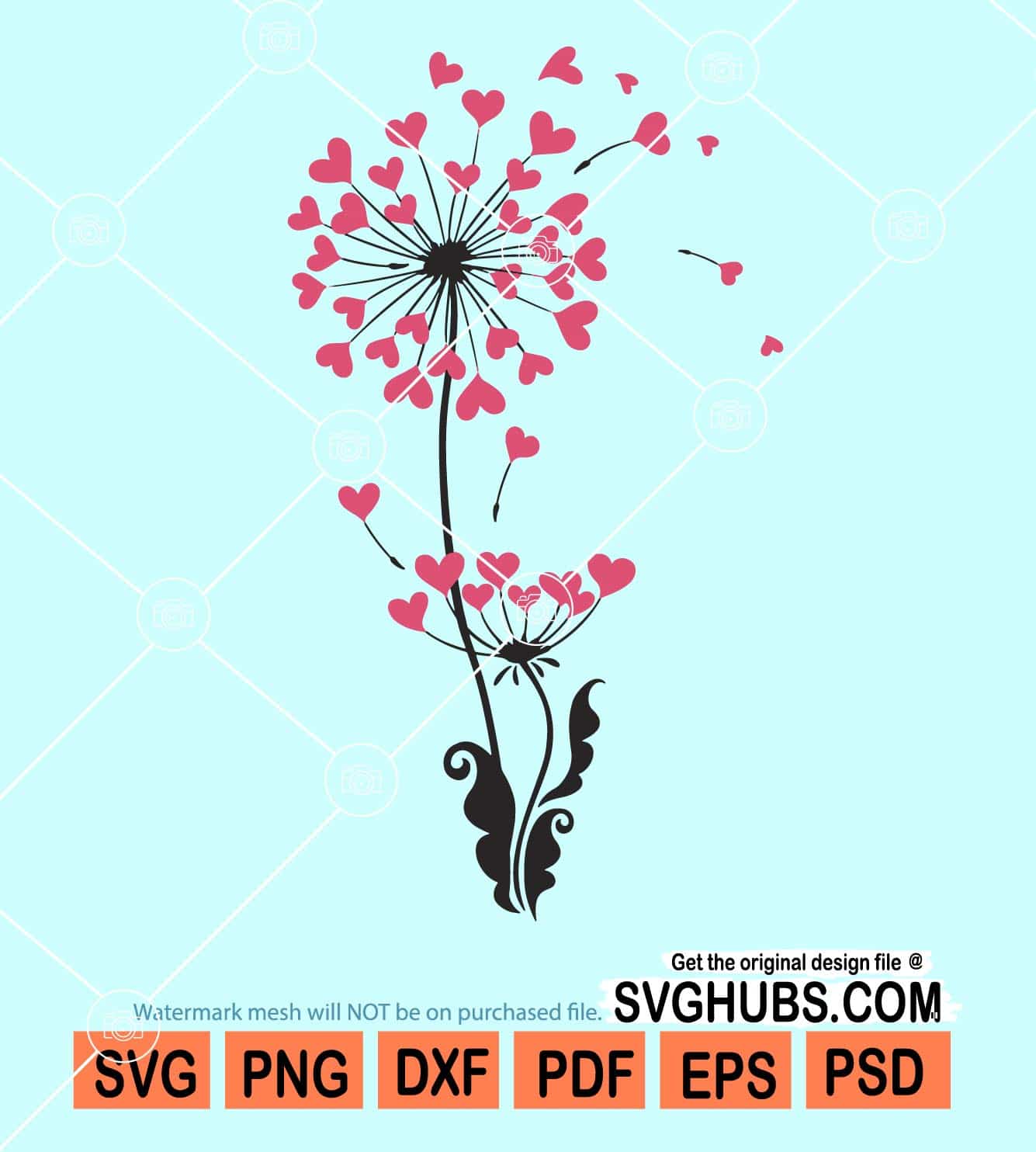 Heart dandelion flower svg, flower svg, botanical svg, heart flower svg, dandelion svg, cute dandelion flower svg, floral svg, plant mom svg, Heart dandelion flower t-shirt svg, SVG files for Cricut, EPS, DXF, PNG files, Silhouette files