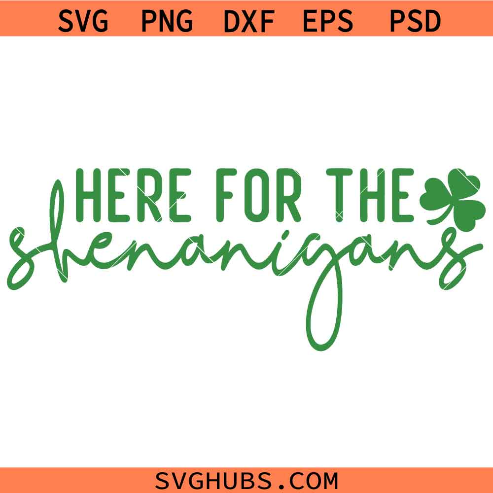 Here for the shenanigans SVG, St Patricks Day Svg, St Pattys SVG, Lucky Clover SVG