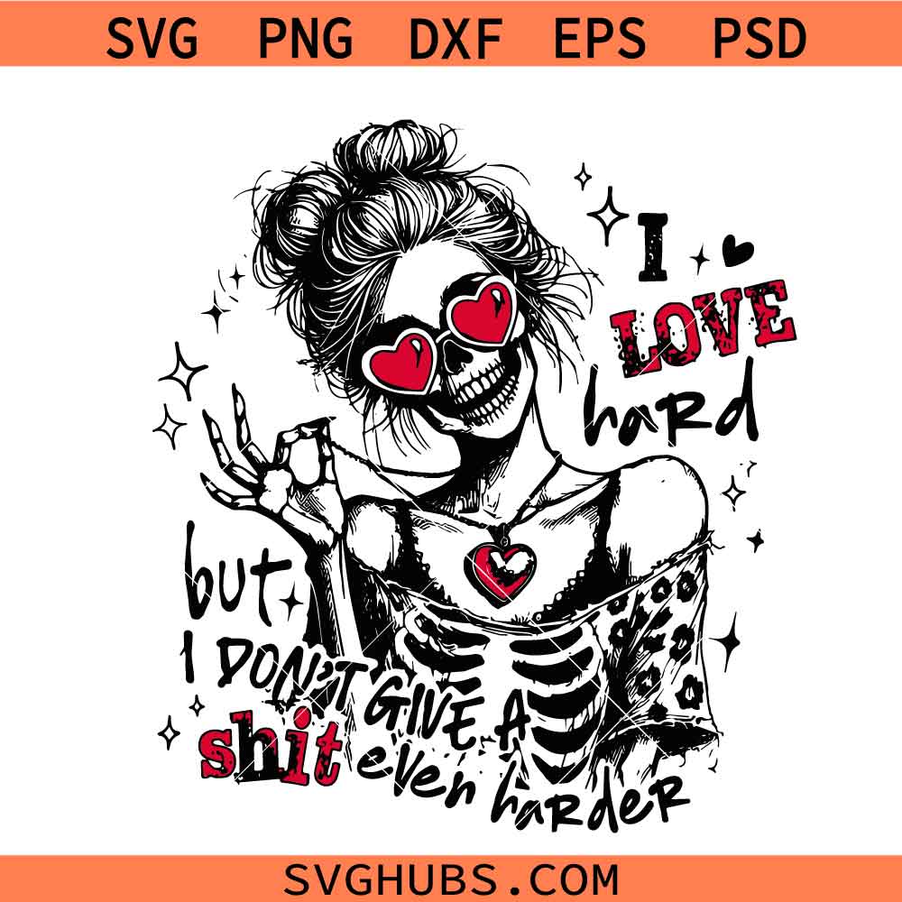 I Love Hard Sarcastic svg png, Valentine Friends SVG PNG, Funny Skeleton Valentines Day Sassy svg
