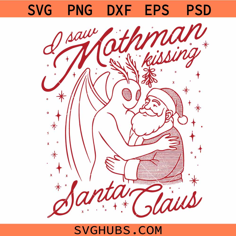 I Saw Mothman Kissing Santa Claus png svg, Funny Allien kissing Santa SVG