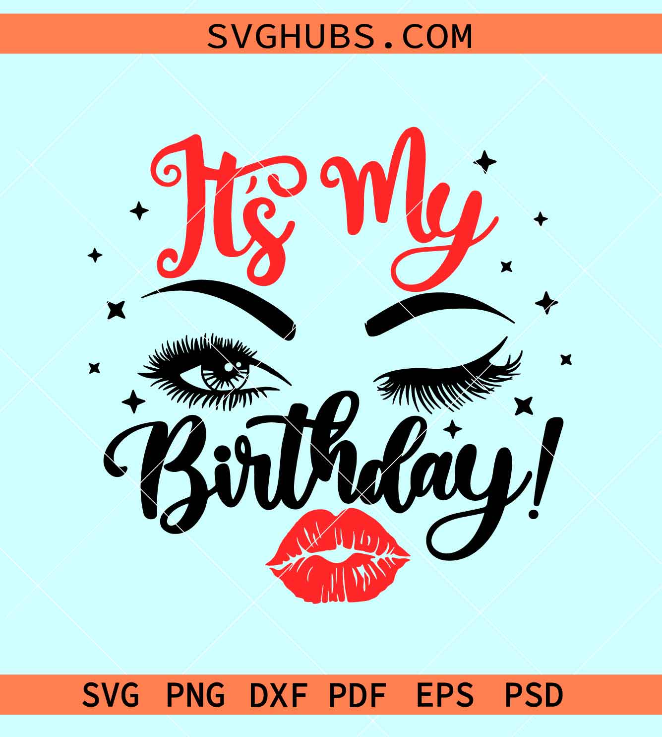 Its my birthday woman face SVG, woman eyes and lips svg, Birthday Girl svg, Birthday queen svg