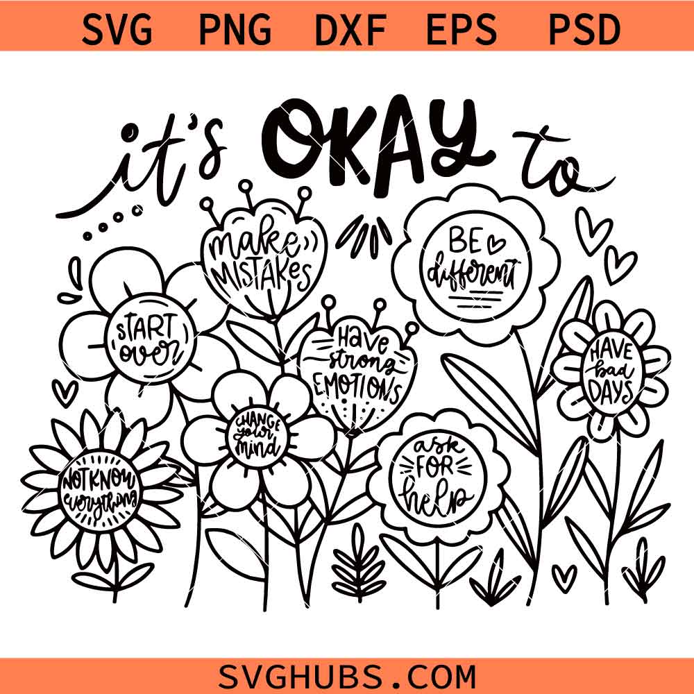 It’s okay to boho floral svg png, flowers svg png, mental health svg png, motivational svg png