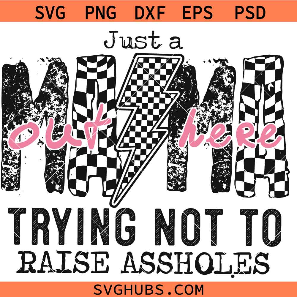 Just A Mom Out here Trying not to raise assholes SVG, Checkered Mama SVG, motherhood svg