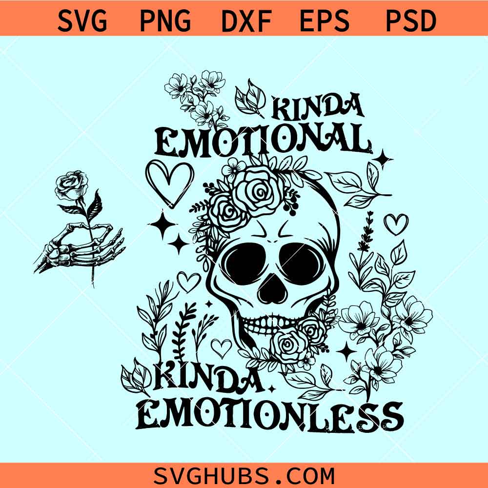 Kinda Emotional Kinda emotionless SVG, mental health awareness svg, floral skull svg