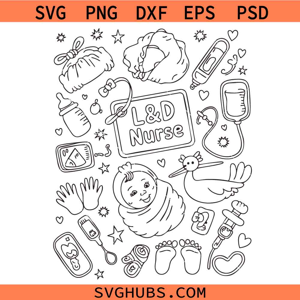 Labor and Delivery Nurse Doodles SVG, Nurse shirt svg, nursing svg, nurse svg