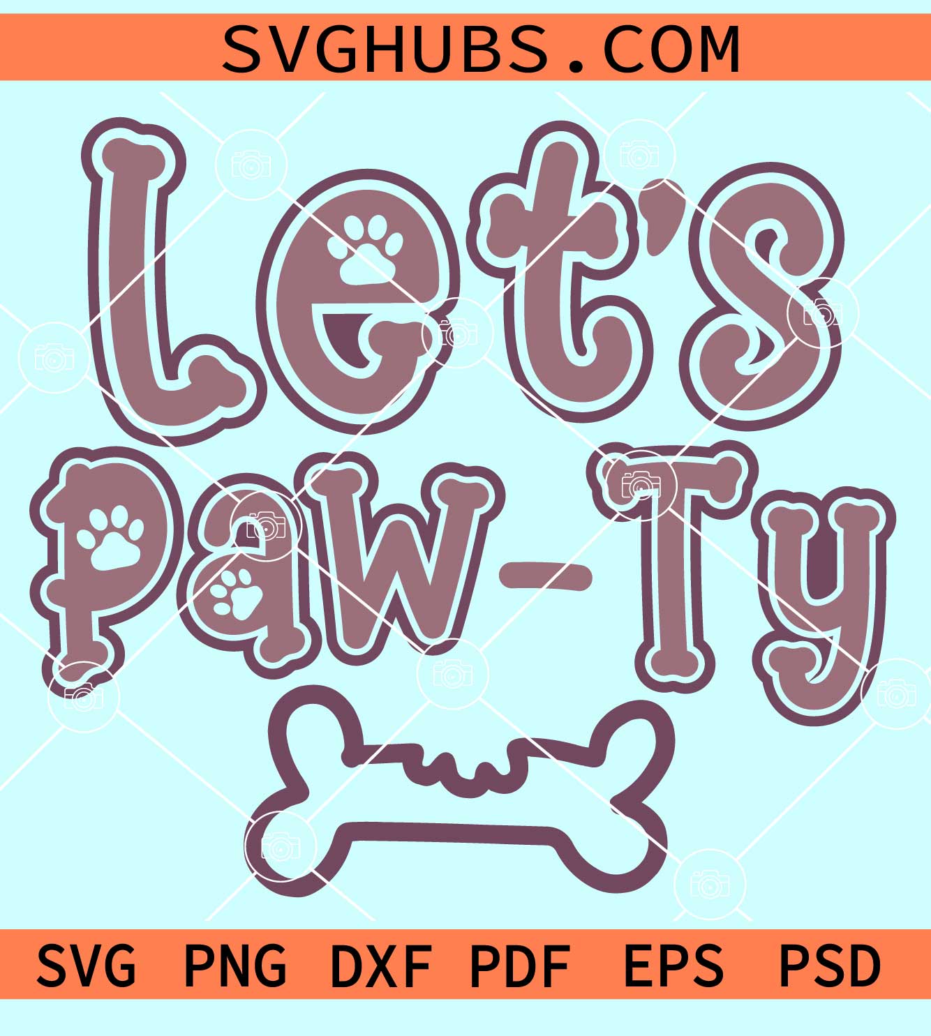 Lets paw-ty svg, Bone svg, Paws Svg, Pet Quotes Svg, Dog Svg, Rescue Dog Mom svg, Dog Birthday Svg, dog lover svg, Funny Dog Svg, Puppy Birthday Svg