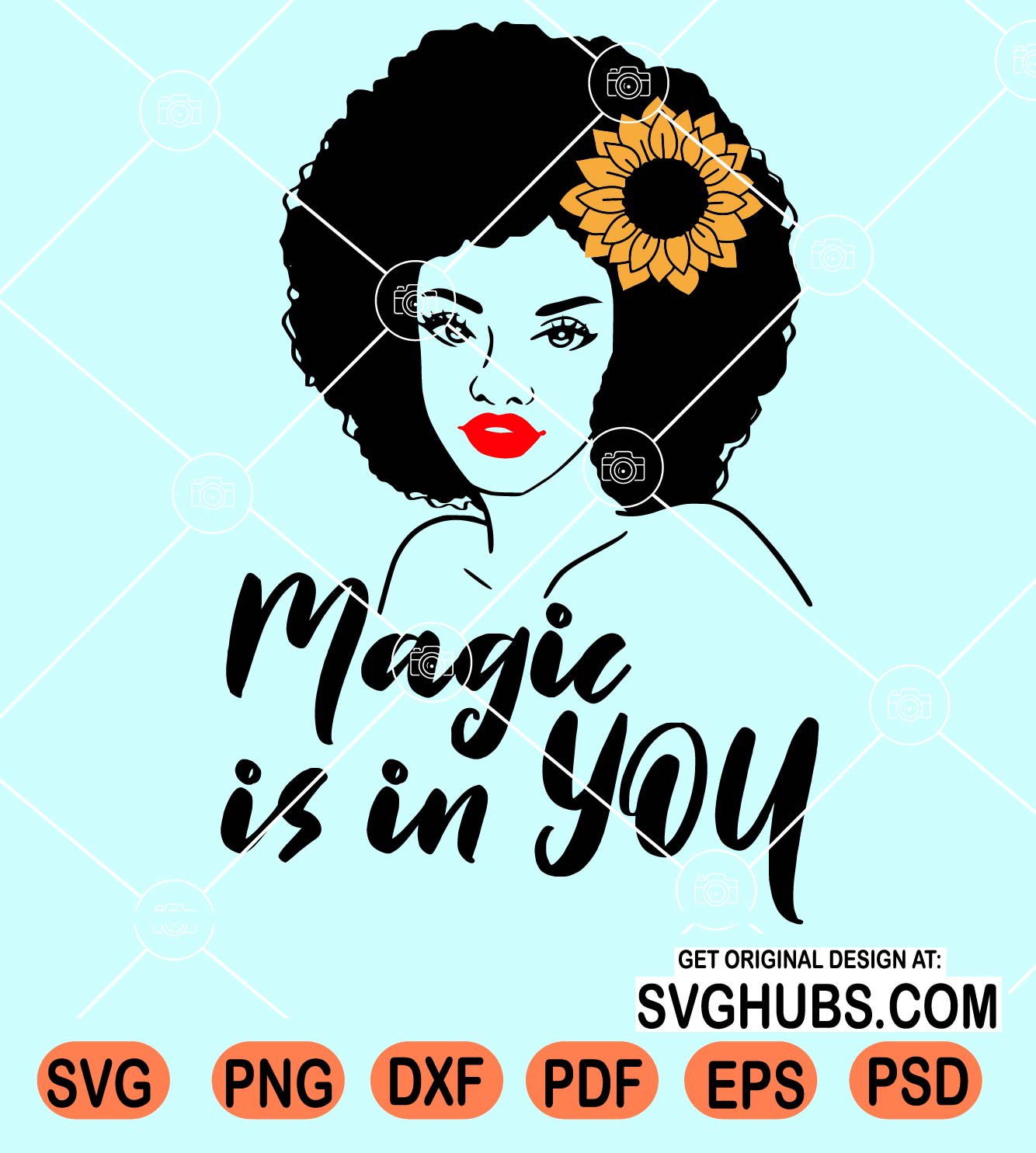 Magic is in you svg, afro woman clipart with sunflower svg, black woman svg, black queen svg, melanin svg, African American svg, Black Girl Magic Svg, Black Queen Svg, Black Girl Svg, Princess Svg, Afro Woman Svg, Silhouette Cut Files, SVG files for Cricut, Layered svg, SVG Hubs, cricut svg.