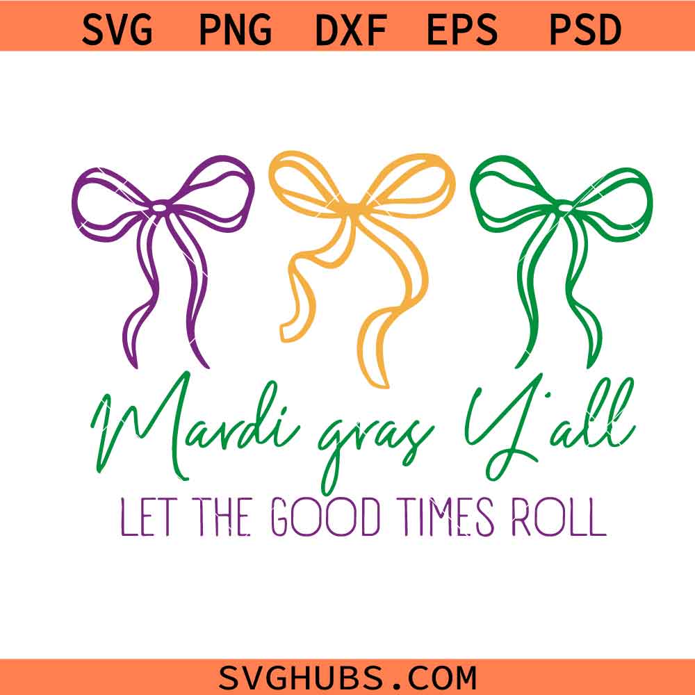 Mardi Gras Y’all SVG PNG, Let the Good Times Roll SVG PNG, Mardi Gras Bow SVG