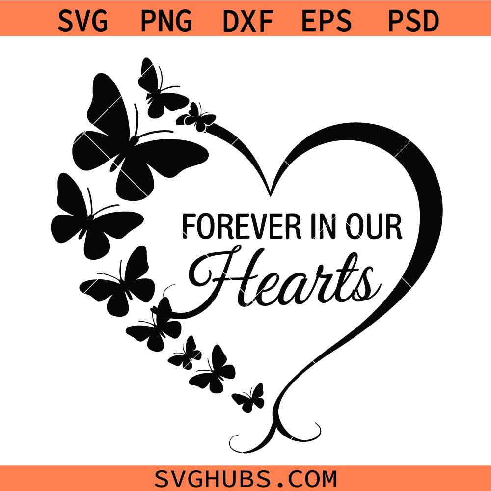 Memorial Butterfly Heart Svg Png, Forever In Our Hearts Svg Png, In Loving Memory Svg Png