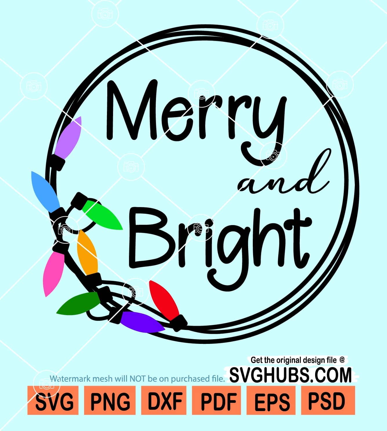 Merry and bright svg, Christmas lights svg, Christmas wreath svg, Christmas frame svg, wreath svg, Holiday Wreath Svg, Christmas sign svg, Christmas svg, Merry Christmas svg, Happy holidays svg, Christmas t-shirt svg, SVG files for Cricut, EPS, DXF, PNG files, Silhouette files