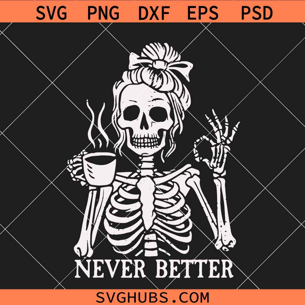 Never Better mom life coffee SVG, Sarcastic Skeleton SVG, Coffee Addict SVG