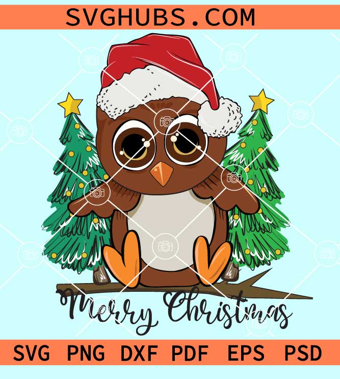 Owl with Santa hat SVG, Christmas owl svg, Owl with Hat svg, Christmas svg file