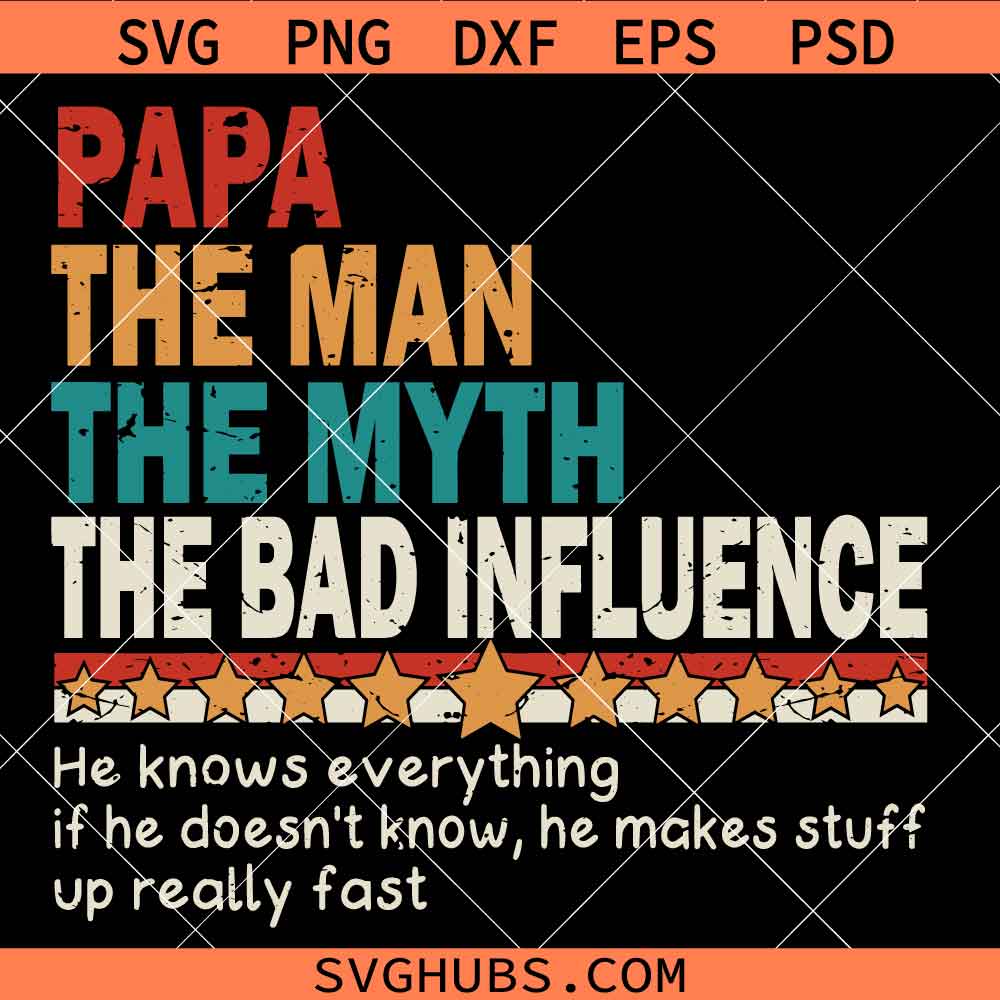 Papa The Man The Myth The Bad Influence Svg, Funny Dad Sayings SVG, Father’s day svg