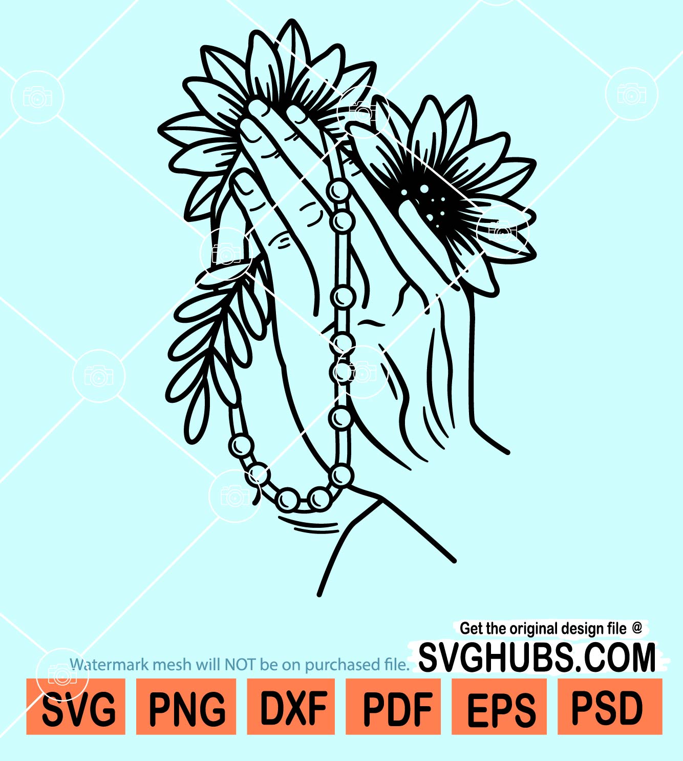 Paying hands with flowers and beads svg, Floral Hands With Rosary SVG