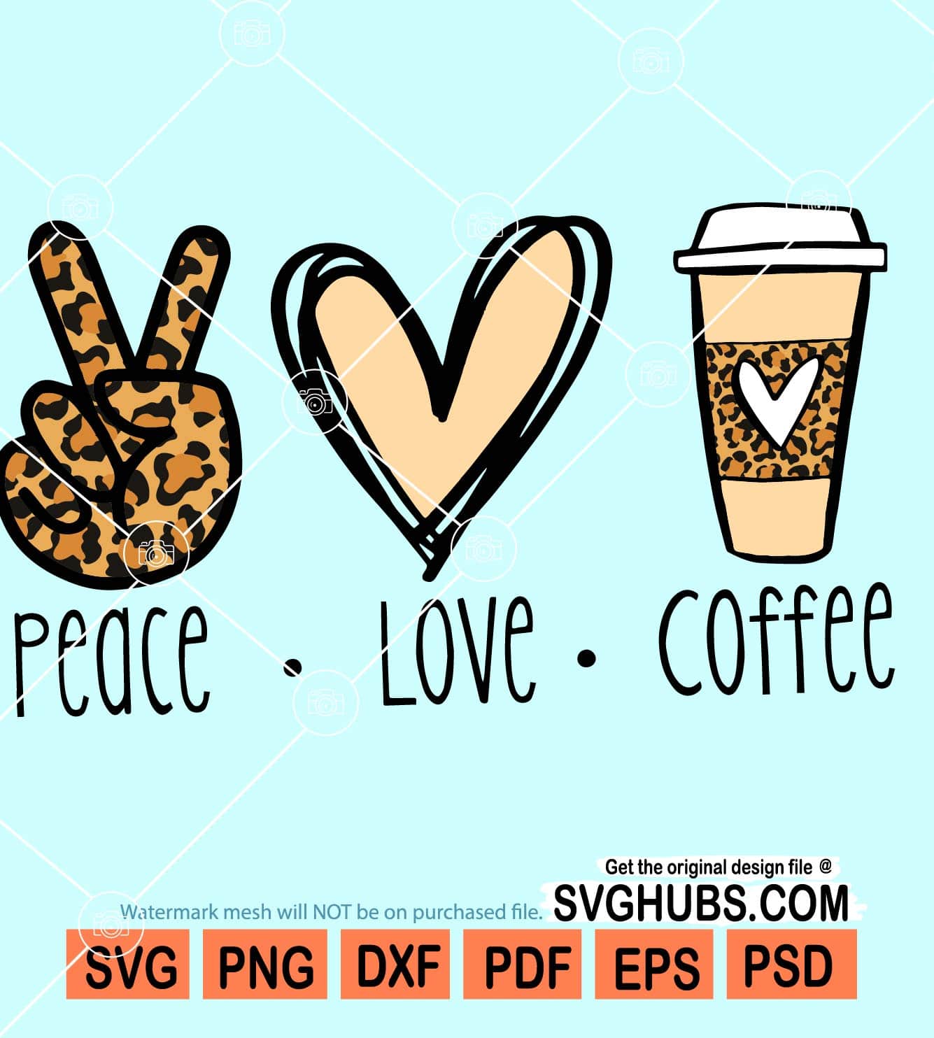 Peace love coffee svg, Leopard print svg, coffee svg, Peace Love SVG, Coffee lover svg, peace love coffee, SVG files for Cricut, PNG files, Silhouette files