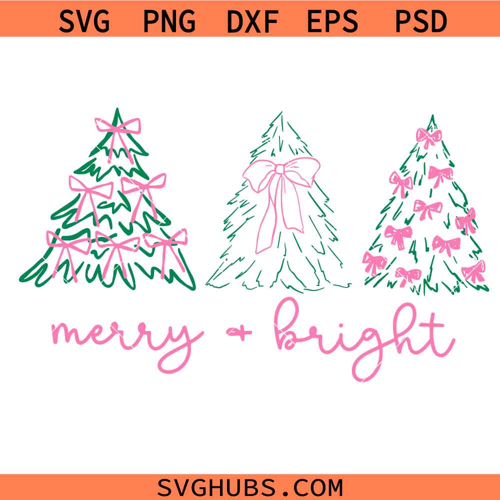 Preppy Christmas Tree Svg, Merry and Bright svg, Christmas Coquette Bow Png, Christmas svg