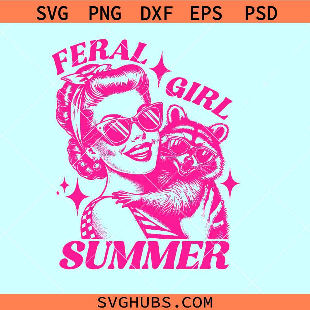 Retro Feral Girl Summer SVG, Feral Girl Summer Svg, Funny Raccoon Png svg