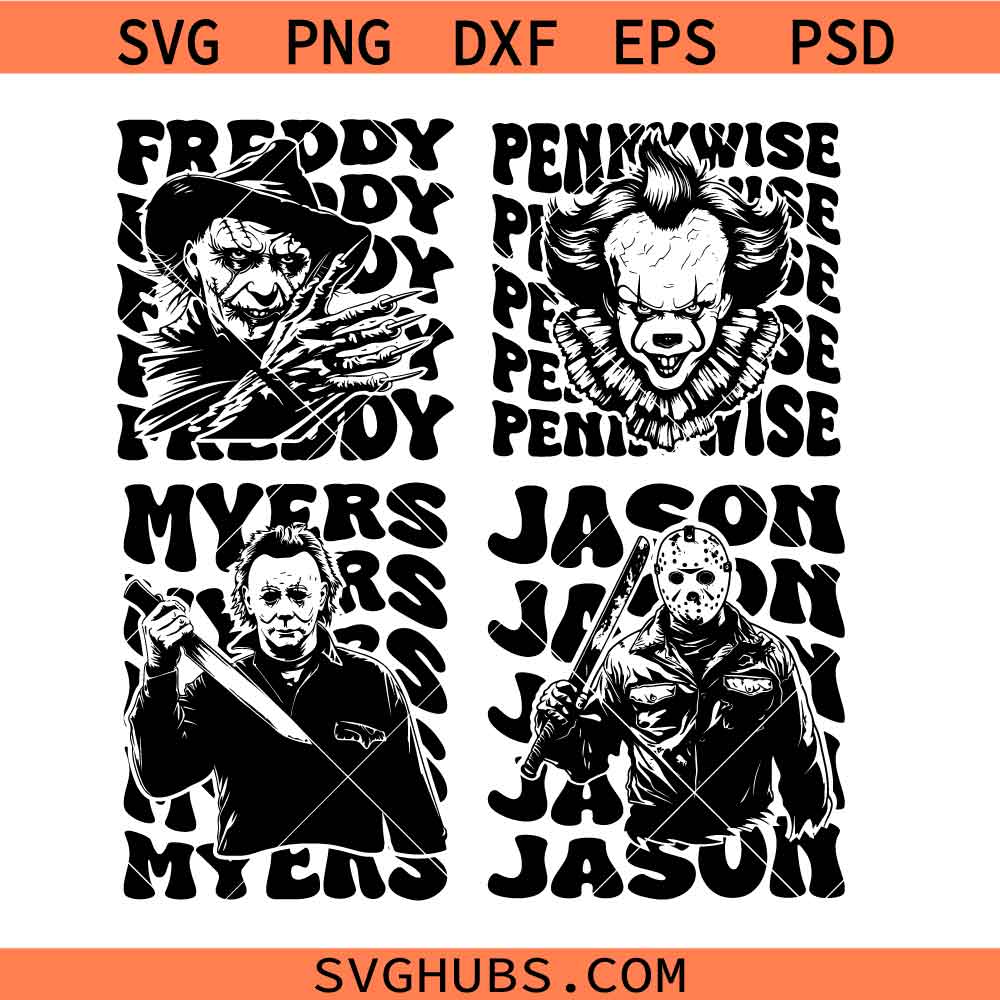 Retro Horror Characters SVG bundle, Horror Movie Characters Svg Bundle, Pennywise Svg, Michael Myers Svg