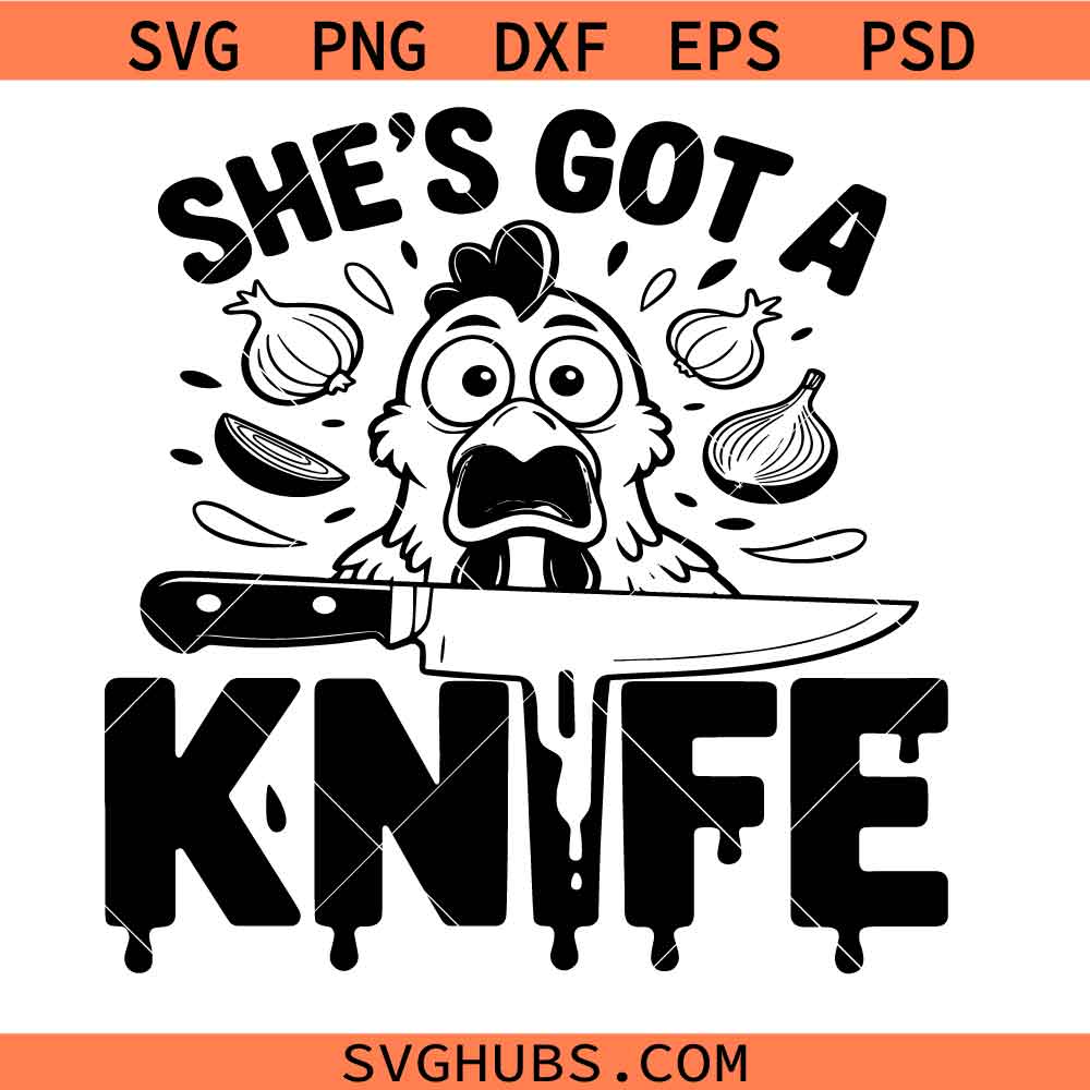 She got a knife funny chicken cutting board SVG PNG, Kitchen Laser Engraving Files