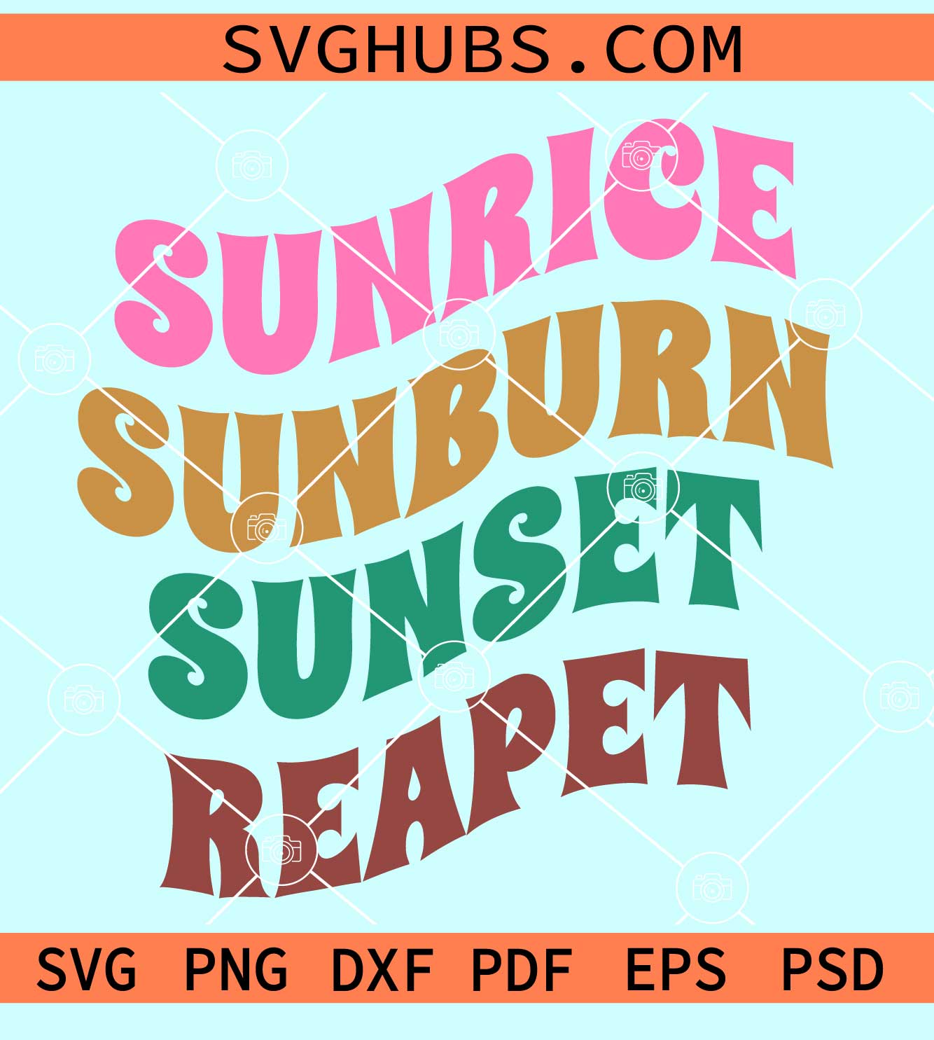Sunrise sunburn sunset repeat SVG, summer svg, summer shirt svg, retro summer svg, retro wavy letters svg, Cricut files, Silhouette Cut Files, SVG files for Cricut, Layered svg, SVG Hubs, cricut svg.
